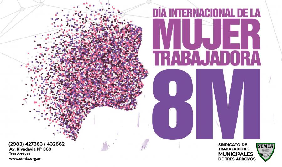 Desde el Sindicato de Trabajadores Municipales saludamos a las mujeres en su día y en especial a las compañeras municipales trabajadoras. Destacamos una vez más y acompañamos la incansable lucha que las mujeres llevan a cabo para lograr igualdad de oportunidades, acceso al goce de derechos, inclusión en políticas públicas y librarse de la discriminación de género, pero fundamentalmente de la violencia machista que a pesar del camino recorrido, es un flagelo que no se detiene.