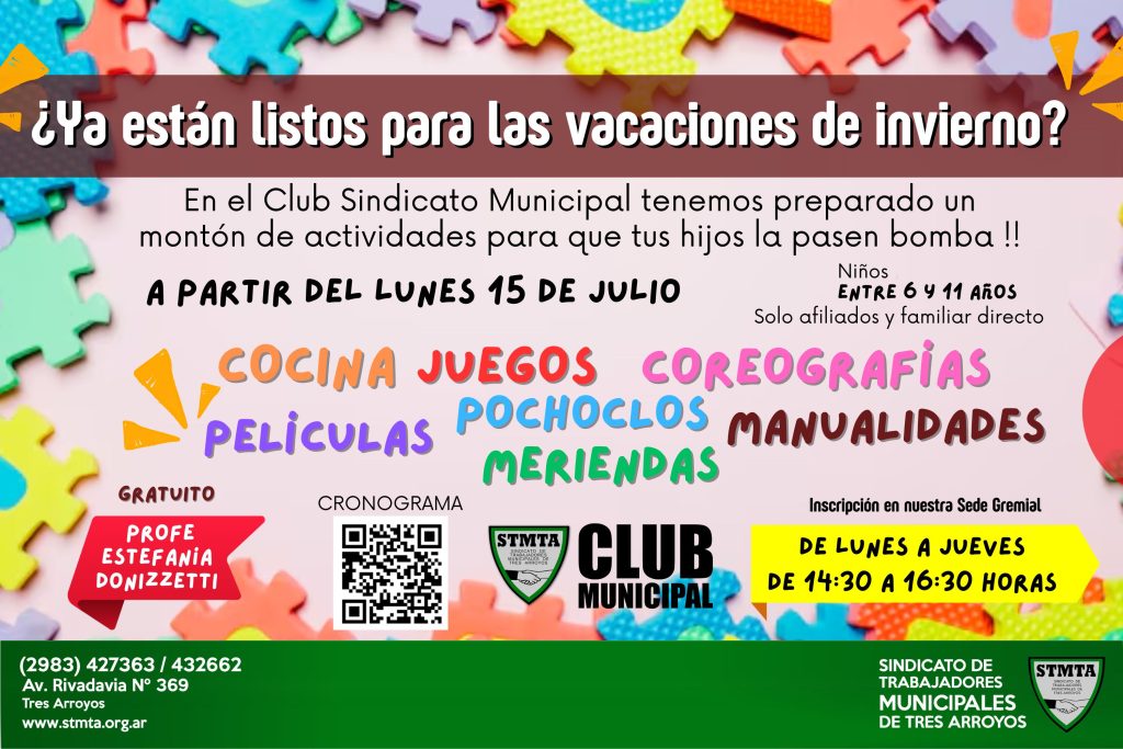 Para estas vacaciones de invierno hemos programado distintas actividades para que los hijos de nuestros afiliados compartan un tiempo de